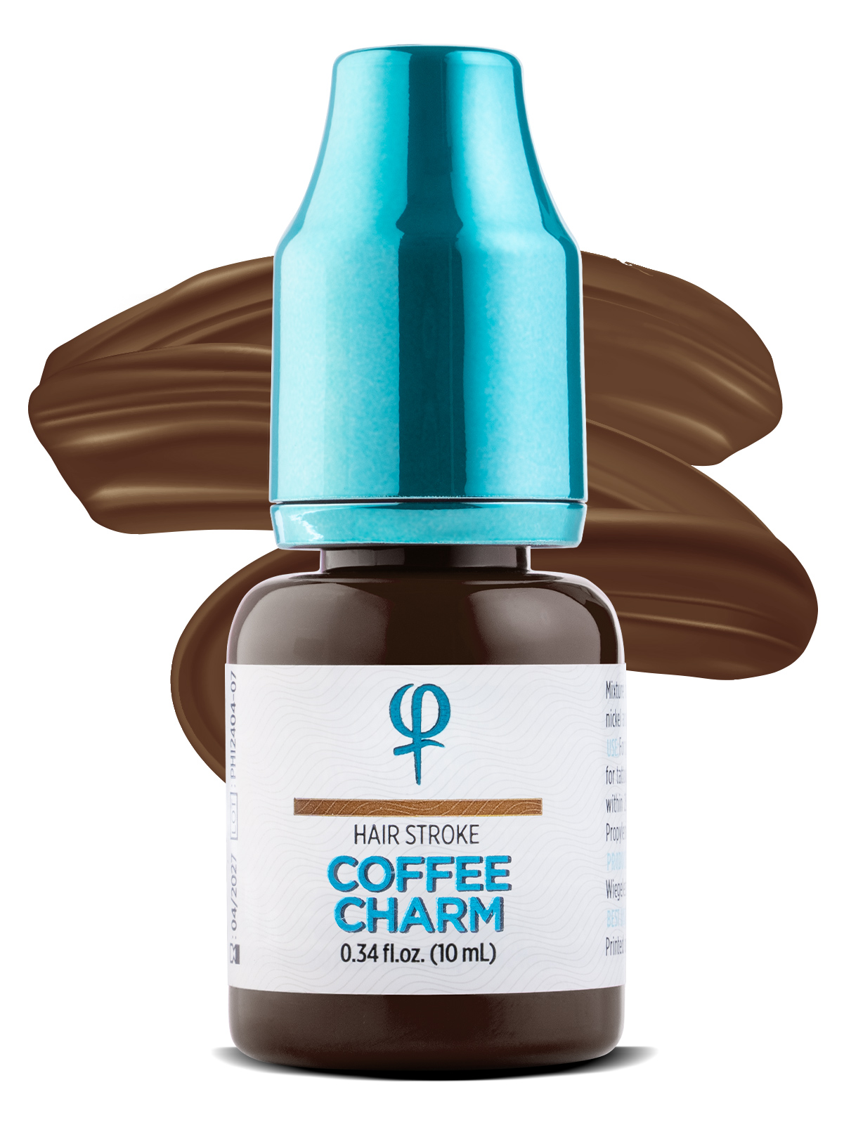 • Inorganic Elements – for a Natural Appearance – ensure seamless integration into the skin for a natural effect. The inorganic base of Coffee Charm ensures that the finished PMU-look closely resembles natural eyebrow coloration. It’s specifically designed for clients wanting a subtle yet enhanced appearance.